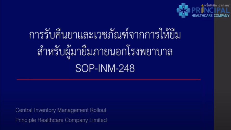 SOP-INM-248 การบริหารสินค้าคงคลัง-การรับคืนยาและเวชภัณฑ์จากการให้ยืม สำหรับผู้มายืมภายนอกรพ.