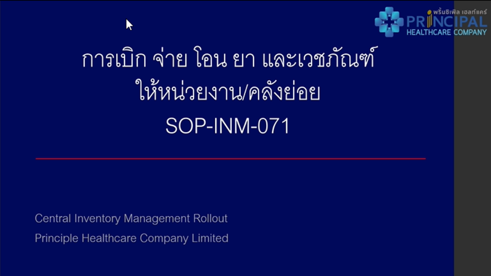 SOP-INM-071 การเบิก จ่าย โอน ยา และเวชภัณฑ์ ให้หน่วยงานคลังย่อย