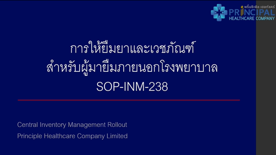 SOP-INM-238 การให้ยืมยาและเวชภัณฑ์ สำหรับผู้มายืมภายนอกโรงพยาบาล